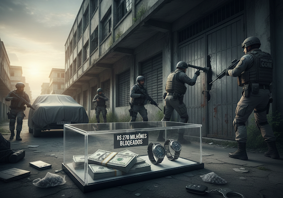 O grande impacto da operação, no entanto, está no bloqueio financeiro. A Justiça autorizou o bloqueio de R$ 270 milhões que estavam em contas bancárias e aplicações financeiras vinculadas aos investigados. As apurações revelaram movimentações financeiras totalmente incompatíveis com a renda declarada dos suspeitos, além de um vasto histórico criminal da maioria dos envolvidos.