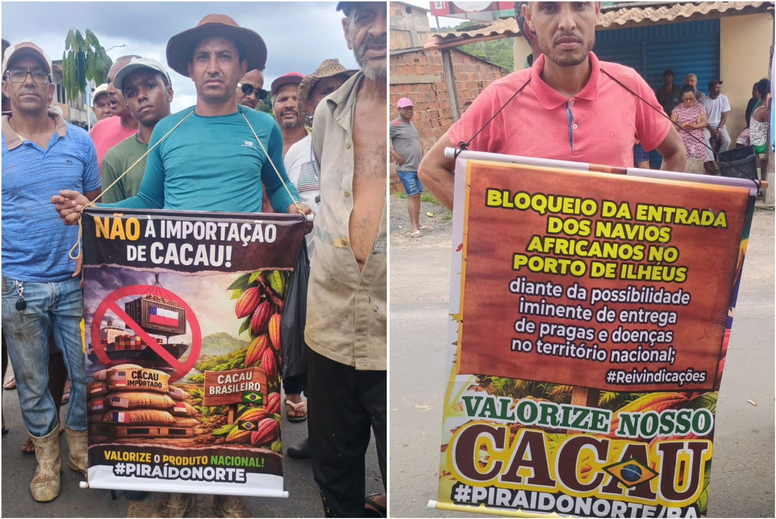 Os cacauicultores protestam contra a importação de cacau africano e o deságio imposto, segundo eles, por empresas multinacionais do setor, o que tem impactado diretamente na renda dos produtores. A pauta de reivindicações já foi apresentada aos governos Estadual e Federal, que analisam propostas encaminhadas por representantes da Bahia e também do Pará, outro importante polo produtor do país. (Giro em Ipiaú)