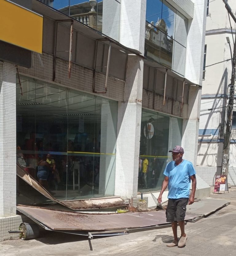 PARTE DA FACHADA DO BANCO DO BRASIL DESABA NO CENTRO DE ILHÉUS