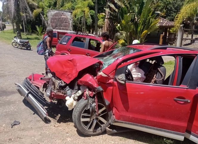 Um acidente envolvendo dois carros foi registrado na manhã desta sexta-feira na rodovia que liga os municípios de Ilhéus e Itacaré, no sul da Bahia. De acordo com informações preliminares, os veículos colidiram de frente, provocando forte impacto. Com a batida, a parte dianteira de um dos automóveis ficou completamente destruída. Após o impacto, um dos carros saiu da pista e caiu numa ribanceira.