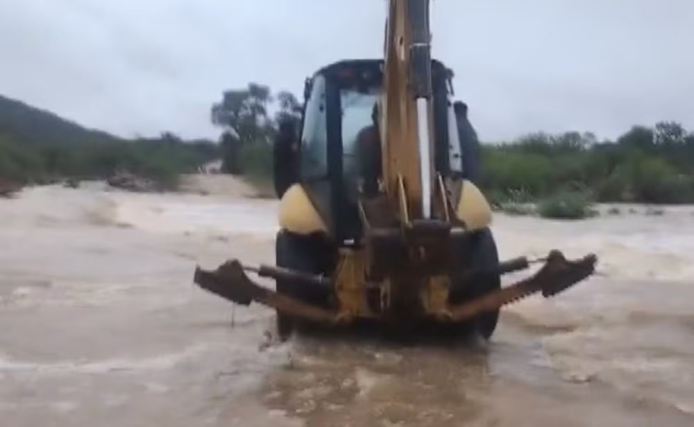 Uma moradora do povoado de Poço de Fora, em Curaçá, no norte da Bahia, precisou atravessar um rio com retroescavadeira durante as fortes chuvas que atingiram a cidade no sábado (28). Ela precisava chegar até um hospital em Juazeiro, a 94 km de Curaçá, para passar por hemodiálise.